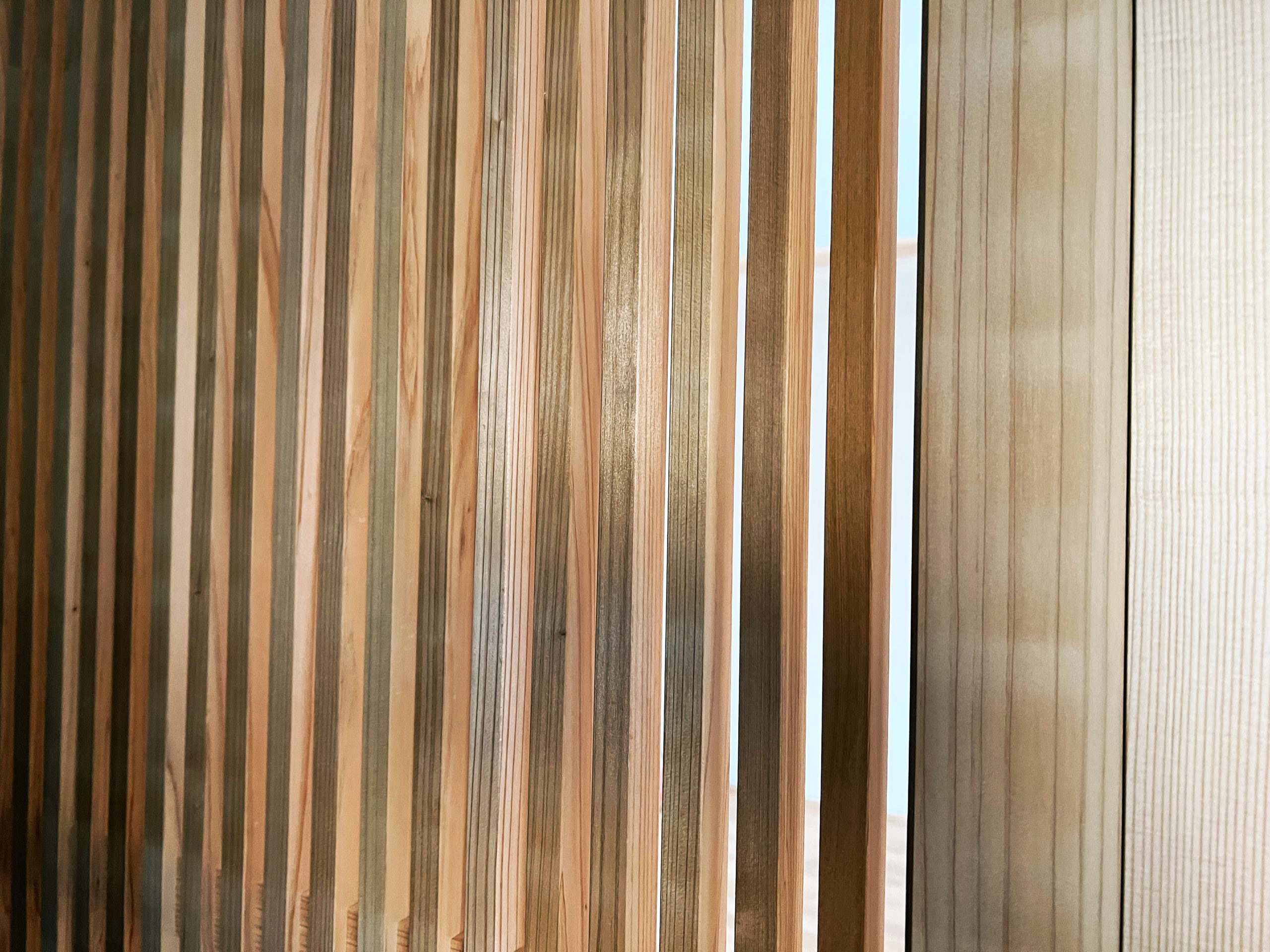大切な資源を無駄なく使うこと、節や白太や木目までもが味となり個性となり、価値を持ち得る可能性があるということ。すべて価値を決めていくのは人です。これらの材料に価値を生み出すことにより材料を有効活用しています。